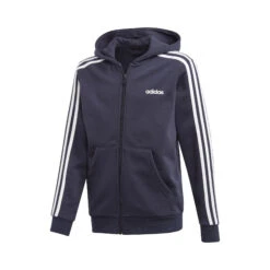 Essentials 3-Stripes Zip Hoodie Boys – Dark Blue, White