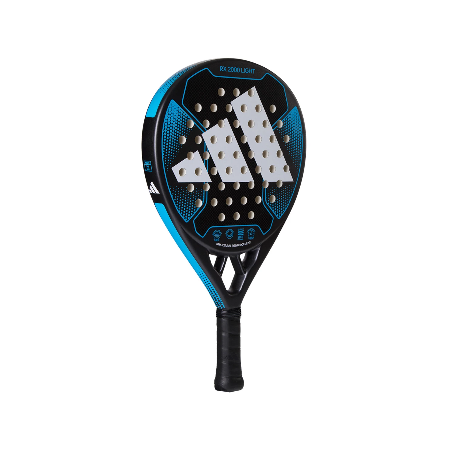The RX2000 Light is a round-shaped, low-balanced and light-weight padel racket that is characterized by its great handling sensation. It has ideal features for intermediate level players looking for comfort to improve their game performance. It offers maximum comfort due to its round format, reduced weight and for its composition of fiberglass materials and EVA Soft Performance rubber.