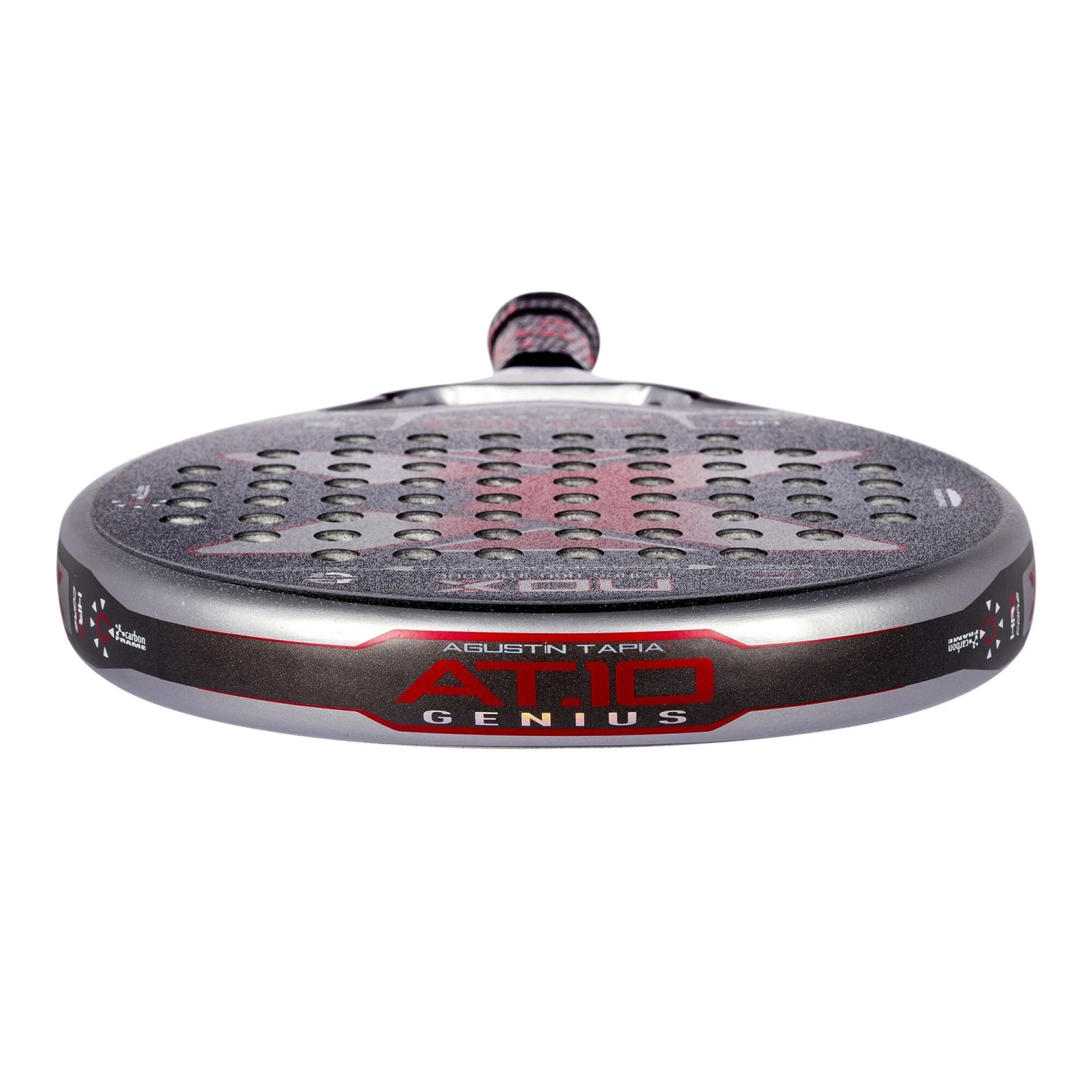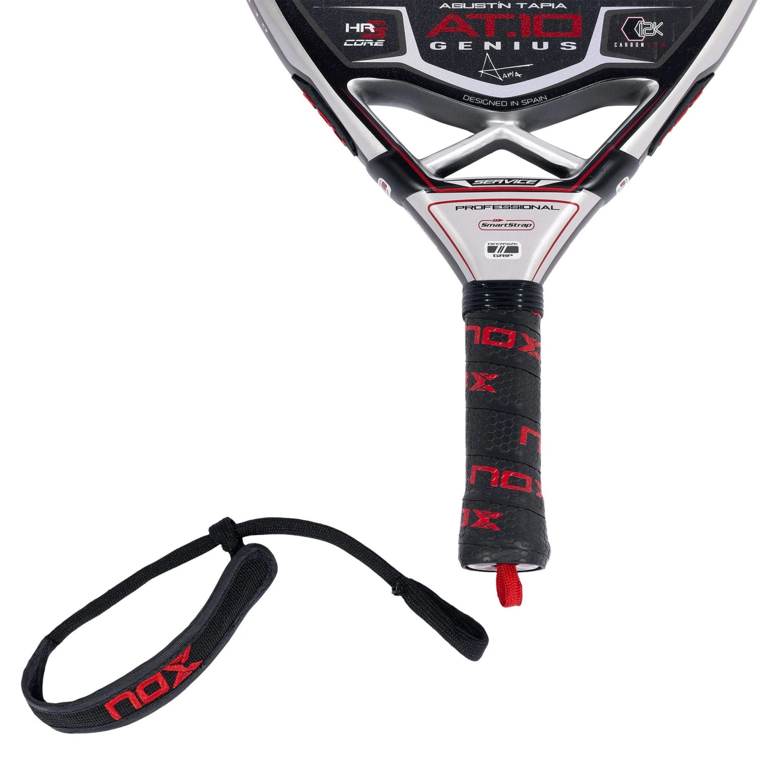 The new AT10 Luxury Genius racket is developed in collaboration with AgustÃn Tapia and stands out for its excellent control and power when hitting back. It has a teardrop format and a medium balance and is made of top-quality materials. 100% carbon frame that provides rigidity and durability to the blade, 12K carbon faces to give explosiveness when hitting and HR3 rubber core to print power. Also, it incorporates the AVS anti-vibration system to avoid injuries to the elbows and rough surfaces to create more effect when hitting